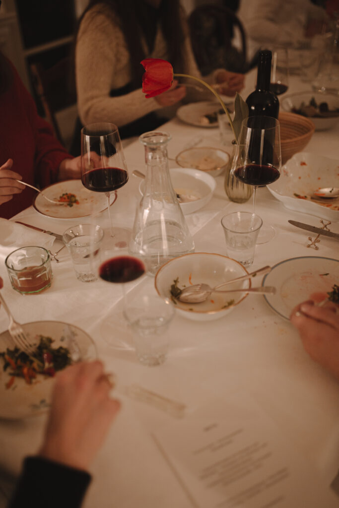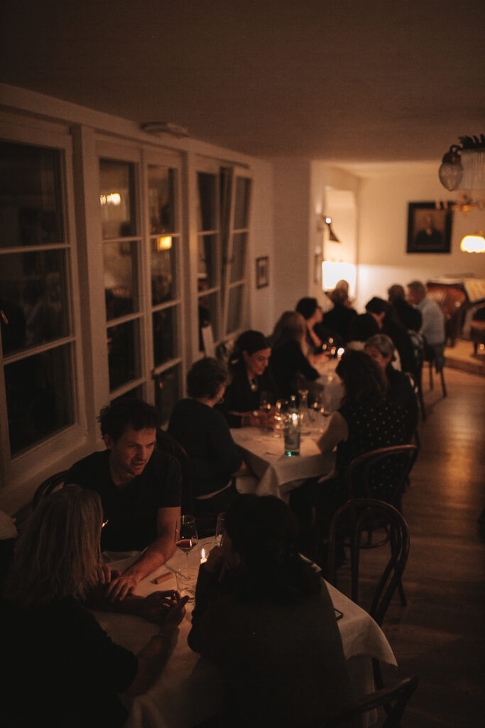 Martin, Ihr Gastgeber, steht selbst in der Küche. Es gibt, was die Saison gerade hergibt und worauf wir im Moment Lust haben. Manches wird geteilt, manches bekommt jeder für sich – immer einfach, im kulinarischen Stil des Hauses, aber mit Zutaten von bester Qualität, direkt von unseren Bauern und Lieferanten. Dazu serviert Ihnen Barbara die schönsten Weine aus unserem Keller.