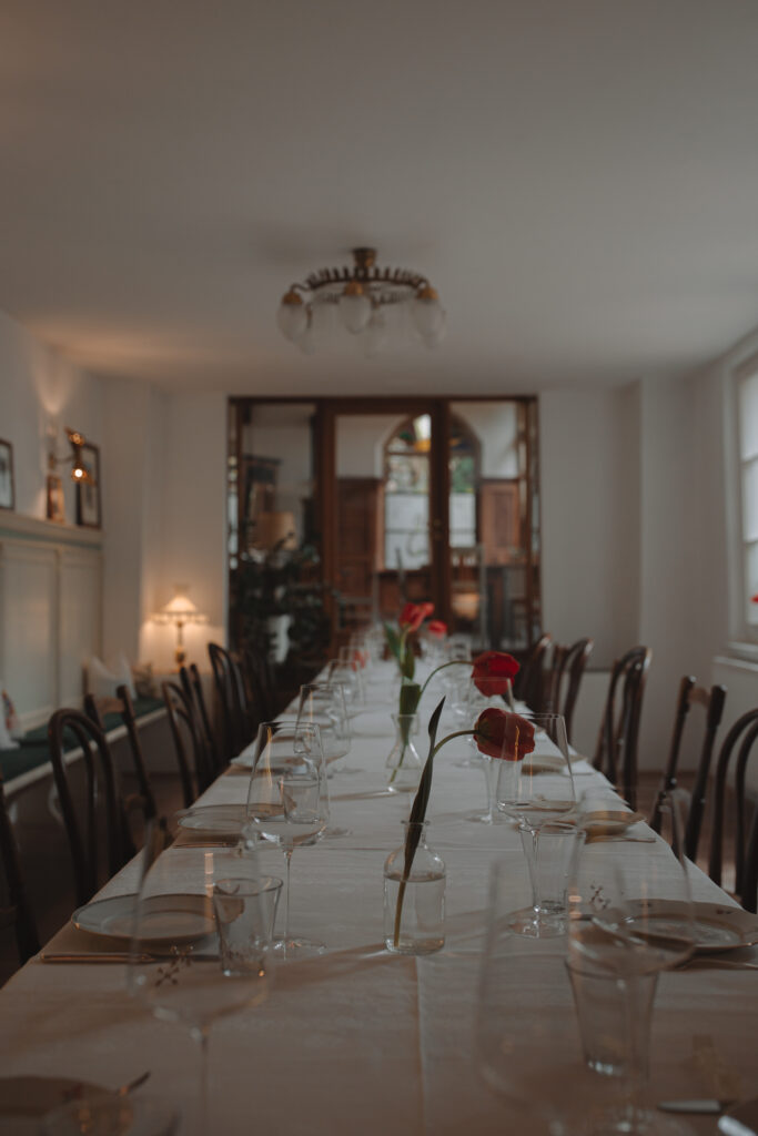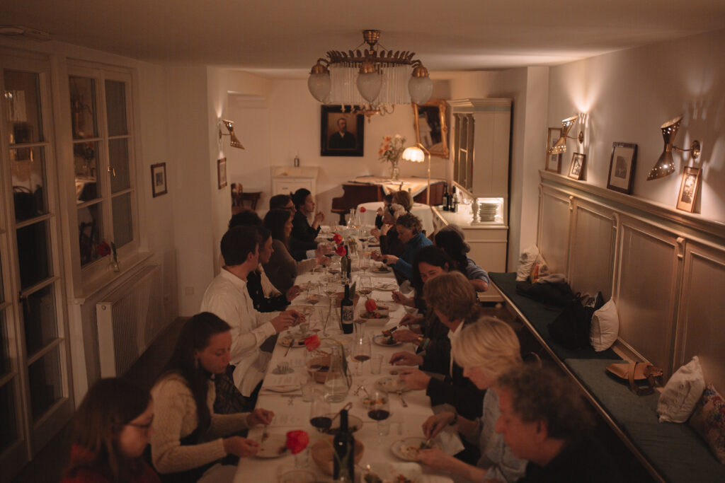 Wir laden Sie ein, sich überraschen zu lassen - sowohl von der Küche als auch von den Menschen. Sie sitzen mit anderen Gästen an einer Tafel und teilen nicht nur einen schönen Abend, sondern auch die Gerichte mit Ihren Tischnachbarn. Wir servieren Ihnen einen Aperò, verschiedene Antipasti, einen Hauptgang mit Salaten und einen kleinen süßen Abschluss. Begleitet wird das Ganze von unserem eigenen Wein.
